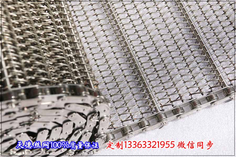 河北天德絲網制品有限公司生產不銹鋼餐盒清洗輸送網帶、金屬輸送帶、鏈條輸送帶、鋼絲編織大孔網帶:13363321955