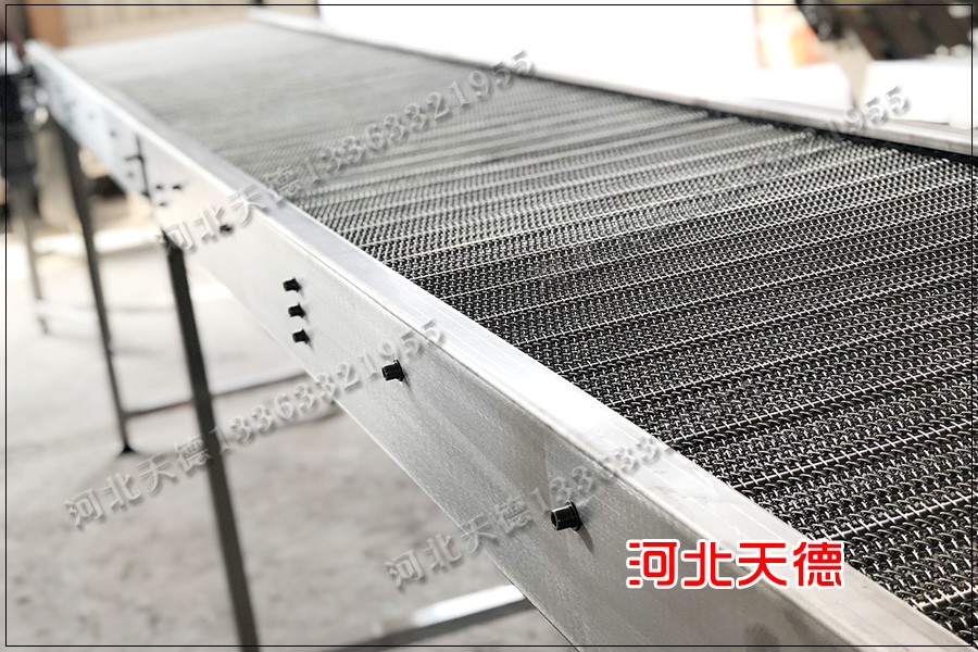 打撈水草使用的輸送機(jī)我們要采用不銹鋼304材質(zhì),網(wǎng)帶式爬坡不銹鋼輸送機(jī)我們要根據(jù)打撈的水草來定制具體的數(shù)據(jù),這里我們?yōu)闉榭蛻粼O(shè)計(jì)了一臺高度為半米,長度為五米,寬度為800毫米的輸送機(jī),共計(jì)三臺。河北天德絲網(wǎng)公司為大家設(shè)計(jì)爬坡網(wǎng)帶輸送機(jī),我們廠家保證能讓客戶購買到經(jīng)濟(jì)實(shí)惠的性價比高的不銹鋼輸送機(jī)。