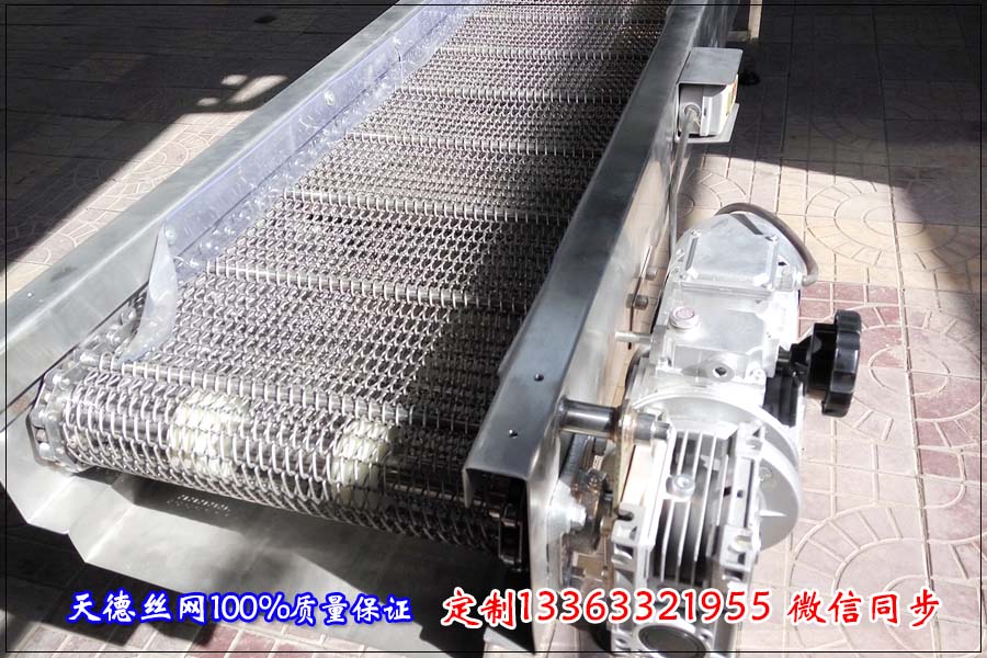河北天德絲網(wǎng)制品有限公司生產(chǎn)網(wǎng)帶輸送機、不銹鋼網(wǎng)帶、人字輸送帶、耐高溫輸送帶、擋板輸送帶:13363321955 http://www.fvyu.com.cn/