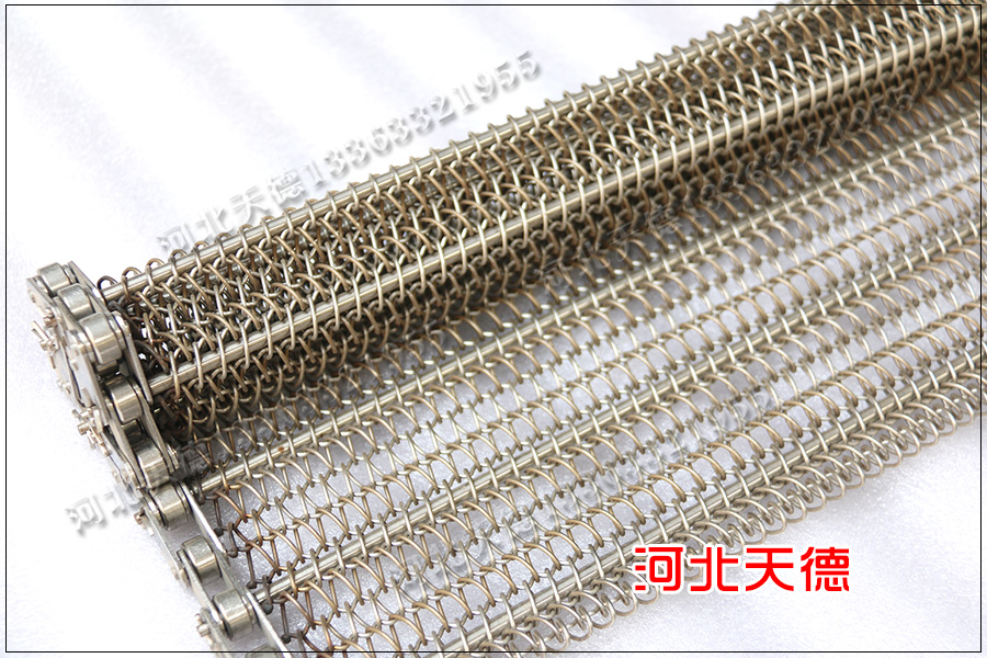 您在這里看到的下面的圖中的不銹鋼鏈條網帶是用在食品行業中,是河南的客戶定制的,用來烘干食品使用,這條輸送網帶的寬度為70公分,長度為38米。