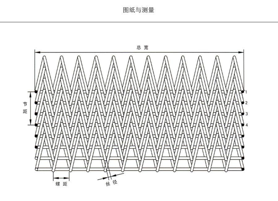 人字形網帶材質:有碳鋼、鍍鋅鐵絲,彈簧鋼絲、耐腐蝕耐高溫不銹鋼材料、A3低碳鋼、45#鋼、1Cr13耐熱鋼、201不銹鋼、304不銹鋼等。