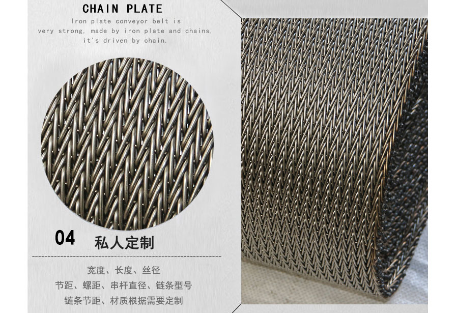 不銹鋼網帶屬于非標準件,我們將根據你提供的規格長寬,材質,絲徑,編制結構尺寸,支軸直徑,支軸間距,鏈條型號等數據核算成本和制作.