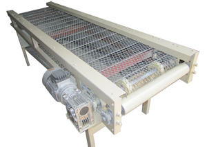 這里要介紹的這款是四川的客戶定制的轉(zhuǎn)彎網(wǎng)帶輸送機(jī),一般轉(zhuǎn)彎?rùn)C(jī)采用鏈條輸送帶和鏈板輸送帶作為輸送件的比較,