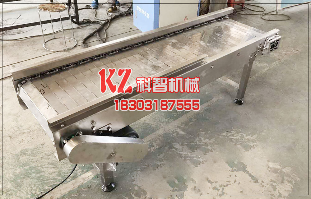 一、鏈板輸送機的運送面平坦?jié)櫥Σ亮π。a(chǎn)品在流水線之間的過渡平穩(wěn),能輸送各種形式的箱包。